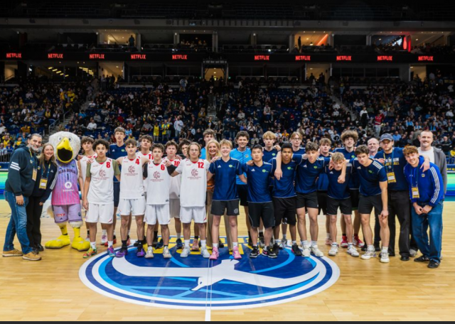 Anlässlich des Champions-League-Spiels Alba Berlin gegen BC Sabah (Aserbaidschan, Baku) durften sich in der Halbzeitpause unsere Basketballer der Oberstufe vor ausverkauftem Haus in der Uber Arena präsentieren. Für das Gottfried-Keller-Gymnasium trat diesmal ein gemischtes Team aus ehemaligen Sportklassenschülern und aus basketballaffinen Schülern des Grundkurses an. Dass diese Mannschaft durchaus Bäume ausreißen kann, haben sie ja schon in der Vorrunde der Alba Oberschulliga bewiesen, als sie alle Spiele souverän gewannen.