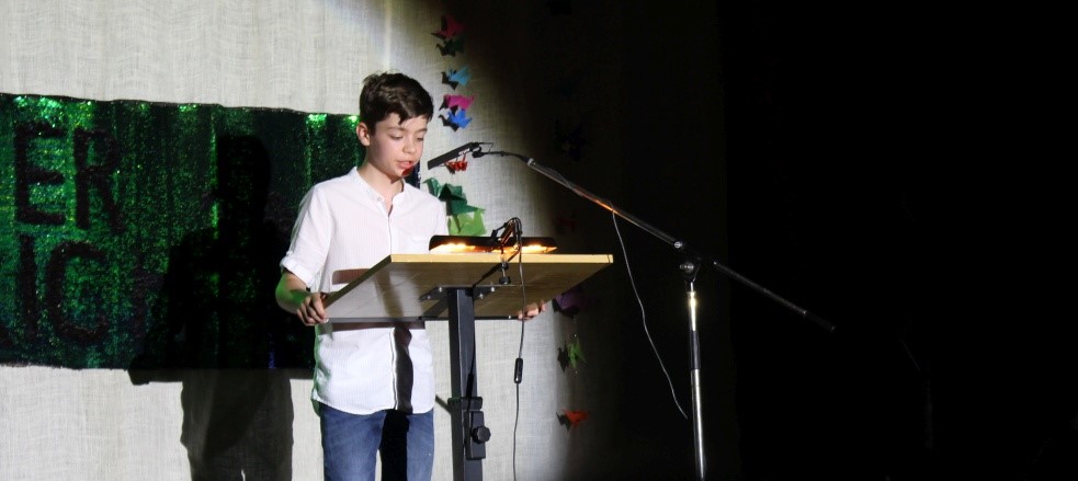 Am 13. Oktober 2016 fand unter dem Motto “Ein Blick in die Zukunft” der 18. “Grüne Heinrich” statt. Die feierliche Ehrung der Preisträger fand diesmal in einem anderen, etwas bescheidenerem Rahmen statt. Der Grund: Durch die Havarie im Frühjahr dieses Jahres war die Aula als traditioneller Ort für diese Feier monatelang unbespielbar geworden. So ganz fertig war sie auch noch nicht am 13. Oktober, wurde dennoch für diese Veranstaltung erstmals für Publikum freigegeben. Auch die Tageszeit war ungewöhnlich: Beginn 11 Uhr. Auch gewöhnungsbedürftig: Diesmal fehlten der Schulchor und das Darstellende Spiel, die Lesung der prämierten Texte und die Ehrung der Autorinnen stand ganz im Mittelpunkt. Es zeigte sich aber, dass trotz fehlender Musik die Schüler den Lesungen konzentriert folgten und natürlich den preisgekrönten Autorinnen kräftigen Beifall spendeten.